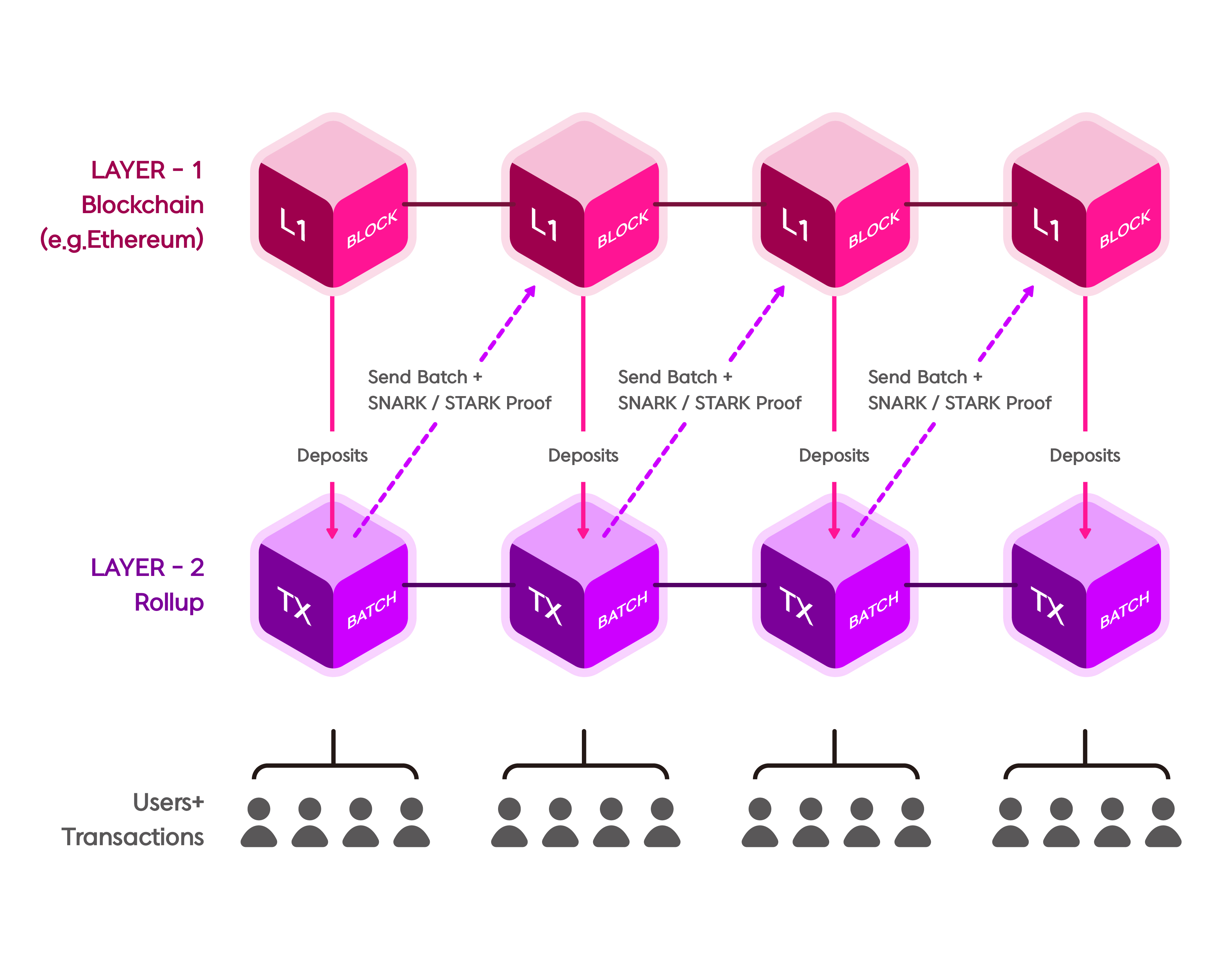 Tnet Transactions are batched on the rollup network and sent back to the mainnet with a SNARK proof to verify transactions